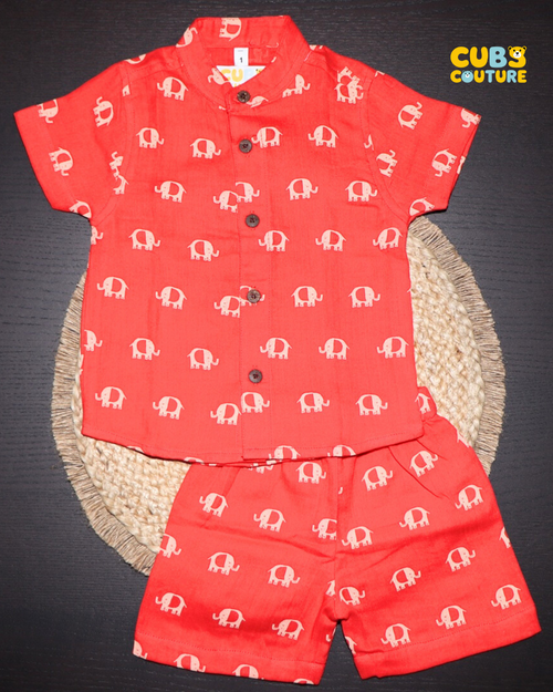 Coloured Muslin Co-ords Shorts - Red Elephant